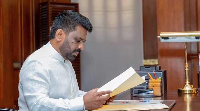 Sri Lanka's newly elected President Anura Kumara Dissanayake reads a document after being sworn in as president at the Presidential Secretariat, in Colombo, Sri Lanka, September 23, 2024. — Reuters